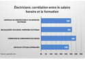 Ce graphique présente les certifications et leur corrélation avec le salaire horaire. Une tendance intéressante parmi les personnes interrogées est que les études d’électricien compagnon paient en moyenne 4 $ de plus qu’un diplôme en génie électrique.