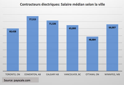 Le salaire médian des contracteurs varie selon la ville, avec les contracteurs des prairies qui arrivent en tête de peloton.