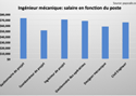 Ce graphique montre le salaire moyen pour six emplois liés au génie mécanique. Globalement, le salaire moyen est de 64 489 $.