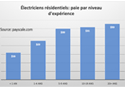 Ce graphique montre le salaire horaire moyen des électriciens résidentiels. Comme vous pouvez le voir parmi les personnes interrogées, il n’y a pas beaucoup de fluctuation au-delà de la barre des 5 ans.
