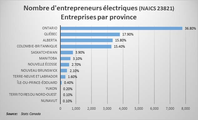 Nombre total d’entrepreneurs électriques par province : Décembre 2014