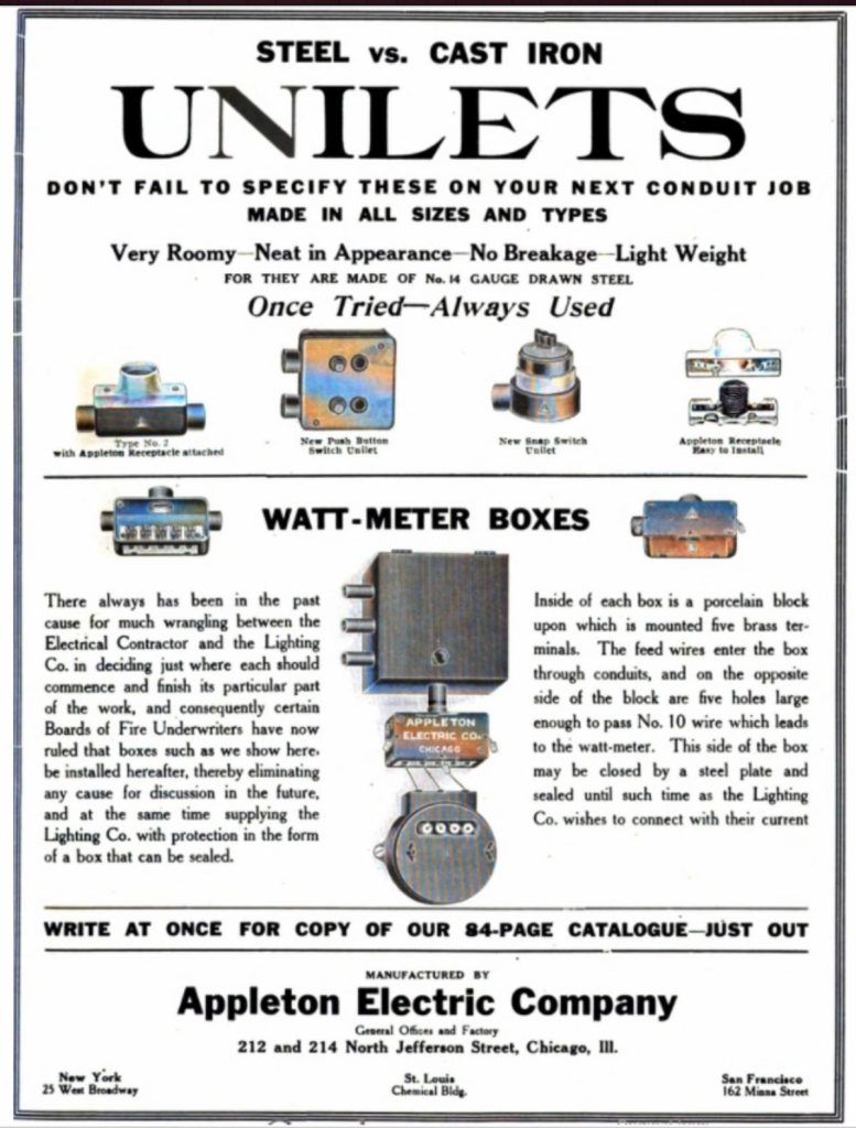 Les origines d’Appleton remontent à l’aube de l’ère électrique en Amérique. L’Appleton Electric Company a été fondée par Albert Ivar Appleton, un entrepreneur récemment immigré aux États-Unis, qui se déplaçait à cheval pour vendre ses corps et boîtes de conduits Unilet® dans les rues de Chicago. En 1947, le bureau d’Albert, qui comptait deux employés, a été remplacé par des installations modernes offrant plus d’un million de mètres carrés d’espace de fabrication et d’entreposage.
