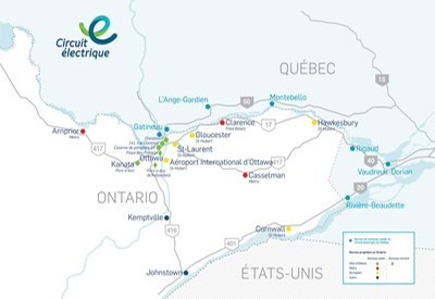 Le déploiement de ce corridor prévoit la mise en service d’ici 2017 de 14 bornes rapides le long des autoroutes 401, 416 et 417 ainsi que le long de la route 17. Huit bornes à 240 V seront également déployées à des endroits stratégiques dans la ville d’Ottawa.