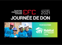 Le lundi 4 octobre 2021, les membres de l’ÉFC et leurs partenaires sont invités à participer à la collecte de fonds visant un montant de 100 000 $ cet automne. Le concept consiste à dédier une journée de ce mois au don d’une petite proportion ou d’une partie des ventes de l’entreprise membre, à cette date, dans le cadre de la « Journée du don ». Tout don en argent comptant est également accepté. Les entreprises membres qui versent un montant égal ou supérieur à 10 000 $ se verront admissibles à une journée de construction Habitat où les employés pourront s’impliquer dans la construction d’une nouvelle maison. Mais l’atteinte de cet objectif permettra surtout d’aider des familles locales à acquérir de la force, de la stabilité et de l’indépendance grâce à l’accès à des logements abordables.