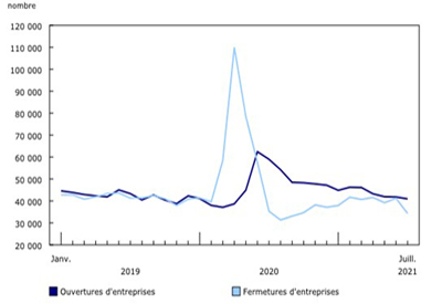 Estimations mensuelles des ouvertures et des fermetures d’entreprises, juillet 2021