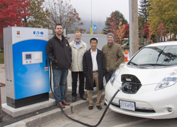 Hydro BC a annoncé la mise en place initiale de 13 bornes de recharge rapide C.C., lesquelles seront fournies par plusieurs fabricants d’équipement d’alimentation électrique dont Eaton. Hydro BC a également sélectionné le système de gestion de réseaux SKY de Greenlots ( http.//greenlots.com ) pour gérer le réseau provincial grandissant de bornes de recharge rapides. Greenlots est un fournisseur de solutions technologiques basées sur des normes ouvertes (open standard) pour les réseaux de véhicules électriques.