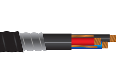 La construction à trois conducteurs élimine pratiquement les champs magnétiques à l’extérieur du câble, ce qui permet de réduire également la tension induite d’un câble d’alimentation à un autre ou la diaphonie aux câbles de commande / d’instrumentation. La gaine en aluminium continue (par opposition à une armure imbriquée) agit comme un bouclier efficace contre le «bruit» haute fréquence qui peut toujours être produit et qui pourrait affecter les câbles de contrôle et d’instrumentation adjacents. Cette gaine, associée aux trois conducteurs de mise à la terre, sert également de chemin à long terme de faible résistance à la terre. Ceci éliminera les tensions permanentes pouvant être créées sur le châssis du moteur et réduira également les courants de palier dus à cette tension permanente ou à la tension de mode commun.