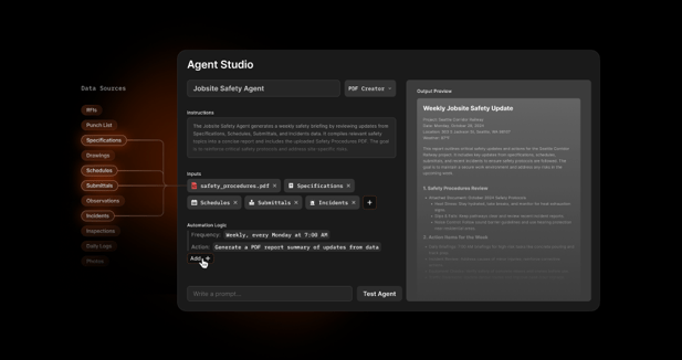 Procore Agents et Agent Studio : des flux de travail automatisés et proactifs
