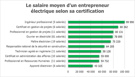Le salaire moyen d’un entrepreneur électrique selon sa certification