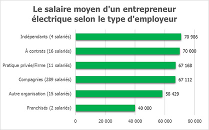 Le salaire moyen d’un entrepreneur électrique selon le type d’employeur