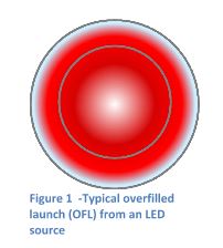 Des variations de la source DEL et VCSEL signifient que la puissance optique injectée dans le câble testé peut entraîner des écarts dans la mesure des pertes de puissance. Ceci est particulièrement important dans les systèmes multimodes où le cœur de la fibre acceptera la répartition inégale de la source lumineuse et le couplera dans le câble testé.
