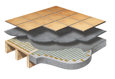 Contrôlés par des thermostats munis d’une sonde installée au plancher, les systèmes de planchers chauffants, par l’entremise de radiation, chauffent non seulement le couvre-plancher mais ils se servent de la masse solide du plancher pour emmagasiner la chaleur qui radie alors du plancher aux surfaces solides et se dissipe uniformément dans la pièce. Le chauffage radiant peut être comparé au soleil. Lorsque les rayons du soleil réchauffent les roches, l’asphalte et autres éléments, la chaleur est emmagasinée par ces éléments qui la radient en retour, même si l’air est froid.