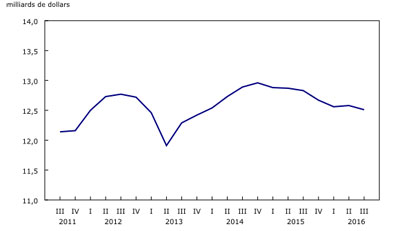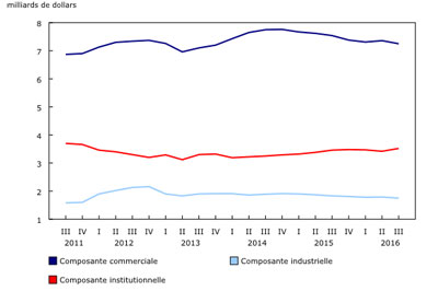Investissement en construction de bâtiments non résidentiels, troisième trimestre de 2016