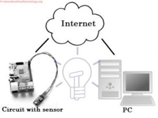 Il s’agit d’un réseau global dans lequel ordinateurs, capteurs et activateurs sont interconnectés par le biais de protocoles de communication Internet. Ainsi, l’illustration ci-dessous montre un ordinateur qui communique sur Internet avec un capteur par le biais des protocoles de communication TCP/IP.