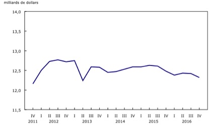 Investissement en construction de bâtiments non résidentiels, quatrième trimestre de 2016