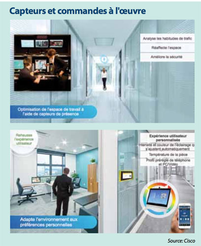 L’éclairage est étroitement lié à une autre tendance importante qui favorise l’adoption d’environnements alimentés en CCBT : les capteurs et commandes plus intelligents et moins coûteux. L’éclairage DEL actuel à haut rendement s’apparie facilement avec les systèmes de capteurs et commandes à basse tension qu’ils soient alimentés ou sans fil. À la suite de la chute considérable des coûts des technologies de détection de pointe, les appareils d’éclairage offrent un placement stratégique au plafond et ceci crée un accroissement rapide d’appareils à basse tension dans le plafond (baptisé le « plafond numérique »).