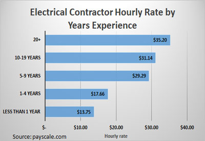 Salaire des contracteurs électriciens en fonction des années d’expérience.