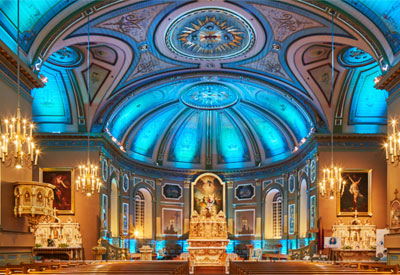 Nommé par l’administration de la paroisse pour créer la mise en lumière, Philippe Péquignot, designer spécialiste de l’éclairage patrimonial, s’est tourné vers XYZ comme partenaire intégrateur dans ce projet. Le designer a conçu divers programmes d’éclairage visant à créer différentes ambiances et à mettre en valeur les œuvres d’art à l’intérieur de l’église. Les experts d’XYZ ont livré une solution composée de 66 projecteurs DEL comptant près de 1 000 points lumineux individuellement contrôlables. Les luminaires sont discrets, parfaitement intégrés et puissants.
