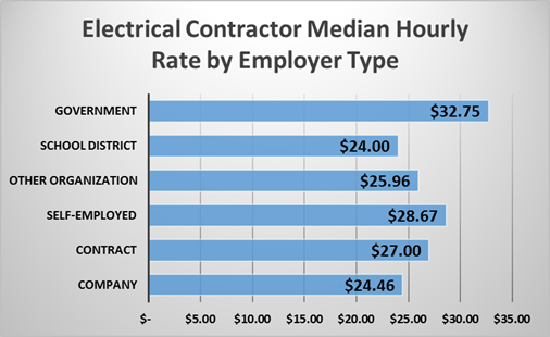 Salaire horaire médian pour les entrepreneurs électriques en fonction de l’employeur