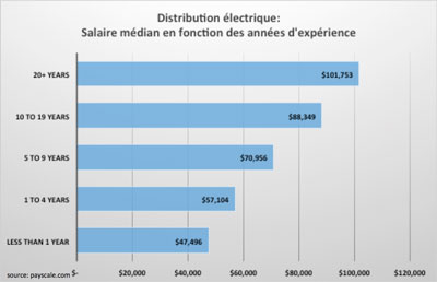 Distribution électrique: Salaire médian en fonction des années d’expérience