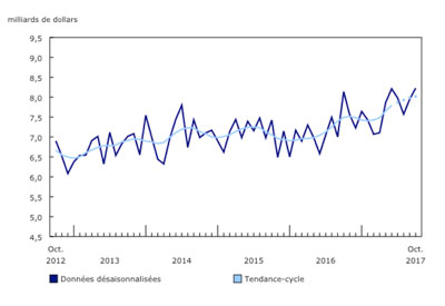 Les municipalités canadiennes ont délivré des permis de bâtir dont la valeur combinée totalisait 8,2 milliards de dollars en octobre, en hausse de 3,5 % par rapport au mois précédent. Toutes les composantes ont affiché des augmentations, à l’exception de la composante institutionnelle, qui a accusé un recul de 14,3 %, lequel a annulé en grande partie la hausse du mois précédent.