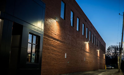 Les appliques murales tout autour de l’extérieur de l’immeuble ont aussi été remplacées. Encore une fois, il s’agissait d’un mélange de luminaires au sodium à haute pression et à l’halogénure métallique. Dix appliques murales de 175W ont été remplacées par le même nombre de produits DEL de 50W et deux autres luminaires SHP de 400W ont été enlevés au profit d’équivalents DEL de 80W pour réduire la consommation électrique tout en améliorant la sécurité.