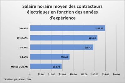 Salaire horaire moyen des contracteurs électriques en fonction des années d’expérience