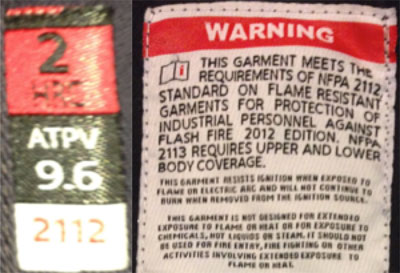 Une évaluation de conformité aurait décelé le problème exposé ci-dessus. Le vêtement portant les étiquettes ci-haut est coté ignifugé, et non pas anti-arc. Il est donc inadéquat pour les travailleurs exposés aux arcs électriques. Un vêtement peut être classé à la fois pour les embrasements éclairs et les éclairs d’arc, mais cet exemple ne stipule pas qu’il satisfait les exigences des vêtements anti-arc.