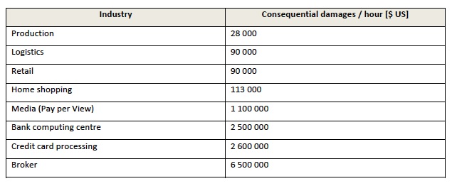 - les coûts directs des interruptions incluent également tout dommage résultant d’une perte de réputation difficile à quantifier, comme les clients et les fournisseurs en colère.