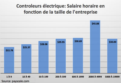 Contrôleurs électrique: Salaire horaire en fonction de la taille de l’entreprise