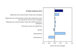 La croissance du produit intérieur brut (PIB) réel s’est accélérée pour atteindre un taux de 0,7 % au deuxième trimestre, après avoir augmenté de 0,4 % au premier trimestre. Parallèlement, la demande intérieure finale s’est accrue de 0,5 %.