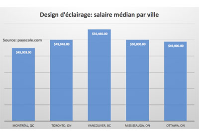 Le salaire médian pour les designers en éclairage est relativement similaire, avec un léger avantage pour Vancouver.