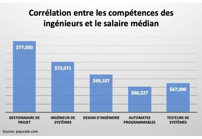 Les gestionnaires de projet sont ceux dont les compétences valent le plus et gagnent en moyenne 9 000$ de plus que le salaire médian des ingénieurs électriques qui est de 68 000$.