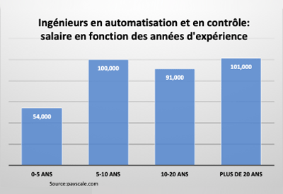 Ingénieurs en automatisation et en contrôle: salaire en fonction des années d’expérience