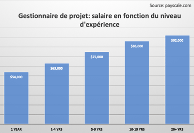 Gestionnaires de projet : salaire en fonction du niveau d’expérience