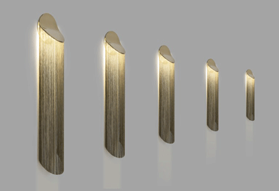 Cé mélange audacieusement une cascade de franges avec les courbes pures et douces du bronze massif. L’usage de l’anthropomorphisme accorde une touche humaine et évoque une présence dans la pièce, tandis que les franges opposent la rectitude de leurs lignes avec l’ambiance feutrée de la lumière qu’elles tamisent. Le tout forme une œuvre fabuleusement cohérente et digne des lieux les plus impressionnants de ce monde.