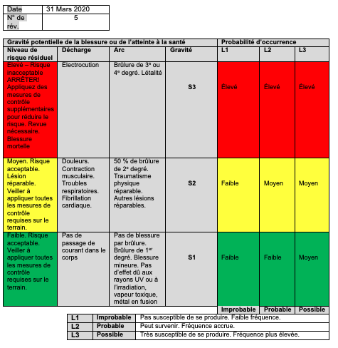 Figure 1 – Matrice d’évaluation des risques et dangers électriques