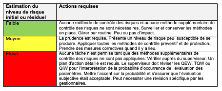 Figure 2 – Estimation du niveau de risque résiduel – Actions requises