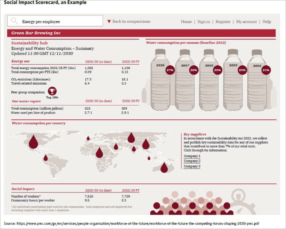 Les résumés d’impact social comme celui-ci font déjà partie de plusieurs rapports annuels reconnus et consultés : l’indice de diversité et d’inclusion de Thomson Reuters, l’indice mondial d’inclusion de PwC, le Dow Jones ’Sustainability Index et d’autres. En fait, plusieurs rapports sur les pratiques commerciales émergentes suggèrent que les normes comptables internationales pourraient bientôt exiger un résumé de l’impact sur le capital financier et le capital social des sociétés cotées.