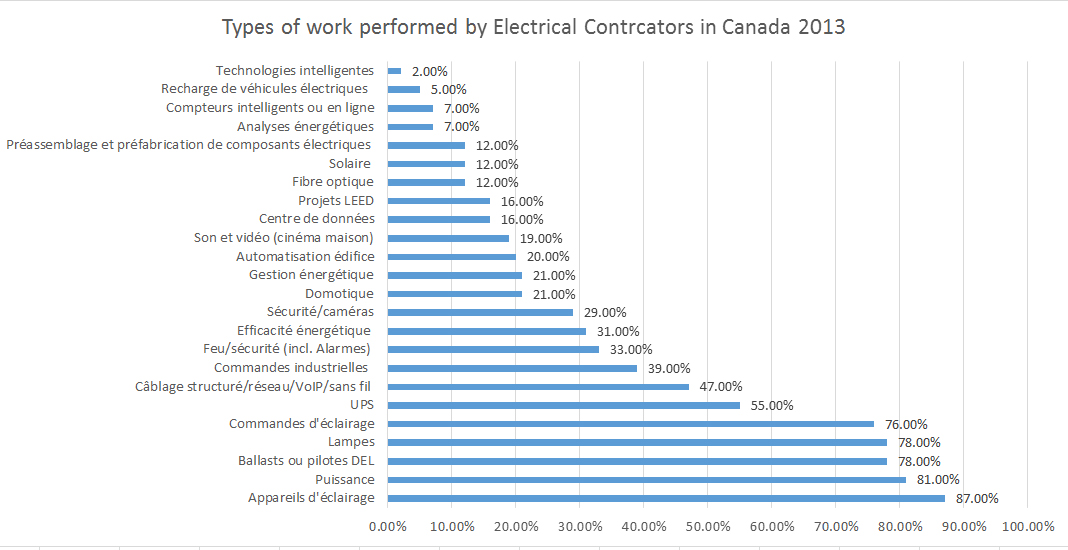 Ce que nous disent les sondages: Types de travaux faits par les entrepreneurs électriciens en 2013