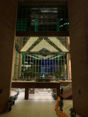 L’architecture du complexe se fond avec le paysage urbain environnant en combinant des éléments du quartier des affaires local sur son côté nord avec le flair oriental du quartier chinois voisin. Le plus remarquable est l’atrium spectaculaire avec son vaste plafond miroir de 55 pieds. Après avoir été en service pendant plus de 35 ans, l’éclairage de l’atrium était dû pour une cure de jouvence. C’est la société mondiale de gestion des installation, BGIS, a été responsable d’identifier les partenaires qui pourraient superviser le projet. Gérant les propriétés du gouvernement canadien, BGIS est un chef de file mondial dans le domaine de la gestion des installations, de l’énergie et de la durabilité. BGIS a sélectionné la firme d’ingénierie mondiale Tetra Tech QI inc. et la société de conseil en éclairage AMP Sales Agency pour spécifier, gérer et commissionner une partie importante du projet. AMP s’est associée à edp inc. basé à Montréal pour faciliter la fermeture et la logistique locale dans leur territoire d’origine. David Morin, Directeur de service – Électricité pour Tetra Tech, Judith Balland, conceptrice d’éclairage et Bruno Lachance, technicien et conception, ont fait partie intégrante de la spécification du système d’éclairage le plus efficace et efficient pour le projet.