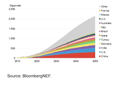 « L’évolution de l’énergie solaire chez le client consiste à ajouter une certaine forme de flexibilité, qui a la capacité de débloquer une pénétration beaucoup plus élevée de l’énergie solaire », a déclaré Yayoi Sekine, responsable de l’énergie décentralisée de BNEF. « La forme de flexibilité la plus évidente est celle des batteries, mais le stockage d’énergie se présentera sous de nombreuses formes, y compris l’évolution de la demande et l’utilisation de véhicules électriques. »
