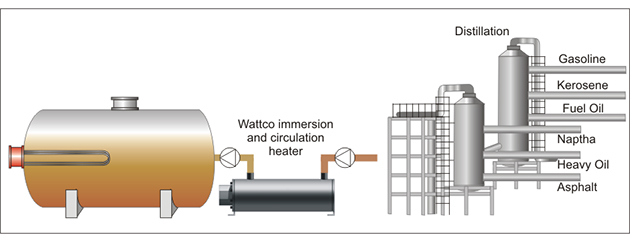 Les réchauffeurs à immersion tels les réchauffeurs à bride ou les réchauffeurs à bouchon vissé conviennent pour le rinçage à l’huile dans l’industrie de raffinerie du pétrole. Le chauffage est très efficace car la chaleur est appliquée directement à l’huile. Les systèmes de rinçage à l’huile les plus perfectionnés utilisent les réchauffeurs à immersion pour le nettoyage des tuyaux.