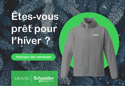 Achetez pour 350 $ de dispositifs de protection contre les surtensions admissibles auprès de Schneider Electric et obtenez une veste gratuite. Hâtez-vous! L’offre se termine le 31 janvier 2022. Participez dés maintenant!