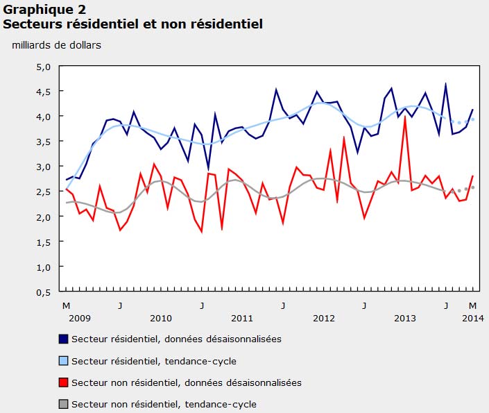 En revanche, le repli enregistré au Québec s’explique par l’affaiblissement des intentions de construction d’immeubles institutionnels et de logements multifamiliaux.