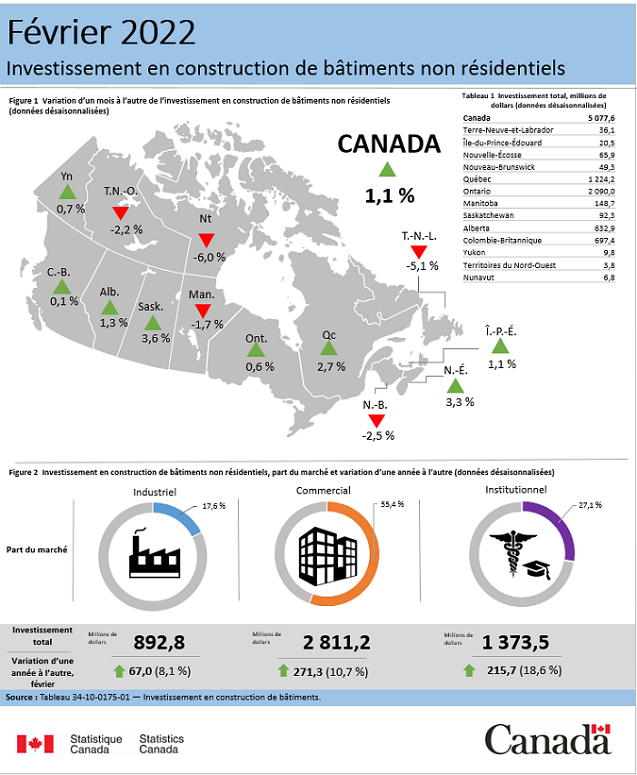 Investissement en construction de bâtiments non résidentiels, février 2022