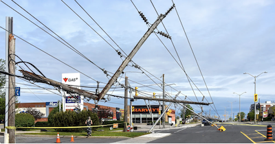 À la fin du mois de mai de cette année, l’Ontario et le Québec ont été frappés par une tempête de fin de semaine de vacances qui a causé des dommages de 875 millions de dollars. La sixième tempête la plus coûteuse de l’histoire du Canada était un derecho, une énorme tempête de vent. Il a laissé plus d’un million de personnes sans électricité et 11 morts. Trois comtés ont été déclarés zones sinistrées. Hubbell a agi rapidement avec notre partenaire de distribution Wesco pour rétablir le réseau électrique.