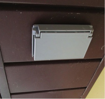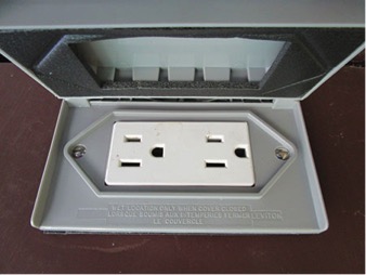 Photo 6. An acceptable location of a wet location receptacle cover that is not suitable for wet locations whether or not a plug is inserted into the receptacle