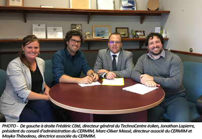 20 octorbre 2016Le Centre de recherche sur les milieux insulaires et maritimes (CERMIM) et le TechnoCentre éolien (TCE) ont signé une entente de collaboration visant le partage d’expertise en vue de soutenir la transition énergétique aux Îles-de-la-Madeleine. Dans un contexte international où la transition énergétique de l’ensemble des réseaux autonomes se dessine, les besoins en expertises seront considérables pour relever le défi de la transition dans ces réseaux généralement éloignés, voire isolés des grands centres.