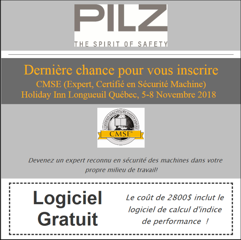 Dernière chance pour vous inscrire – CMSE (Expert, Certifié en Sécurité Machine)
